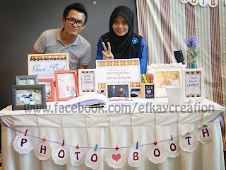 vendor utk kedua2 servis ni adalah org yg same, Efkay Creation. actually, aku amik pakej promotion dorg. boleh dikatakan berbaloi2 laa jgk. hehe. mase dorg wat promo tu, aku grab pakej RM499 which include wedding guestbook, full set table deco, 1 set of pen color, 1 set of candy, full set of photobooth backdrop, full set props table, 50 pictures 4R size photo, 5 props & bubble talks and 2 person incharge. sape yg tak nak klu semua disediakan ye tak? heheh. aku pn grab promo ni before aku bertunang lg klu tak silap. ye laa, mase tu preparation utk bertunang dah settle, trus proceed dgn preparation kawen. and kebetulan mase tu duit tgh ada, baek grab cpt2 kan. hehe. actually, vendor ni salah sorg dr ex-B2B jgk. tau psl promo ni pn dr group B2B. and FYI, aku laa 1st customer dorg! hahahaha. 1st customer tp kawen plg lambat skali. kwn2 aku dekat 10 org da settle kawen gunekn khidmat dorg jgk. ok laa tu, aku tlg promote kan business dorg. servis & PR bagus, mesti laa rekemen kaan. hehe. so far, dorg makin lame makin improve. siap tambah servis lg mcm doorgift & button badge. what i like about them is dorg sgt kreatif! harga of kos affordable! and serius korg akan berpuas hati. btw, dorg ni based in Klang. so kpd mereka2 yg nk kan khidmat dorg, just contact dorg directly eh. promo utk 2013 mcm tak kua lagi. hehe. okay, mari kite layan gmbr2 dorg eh.